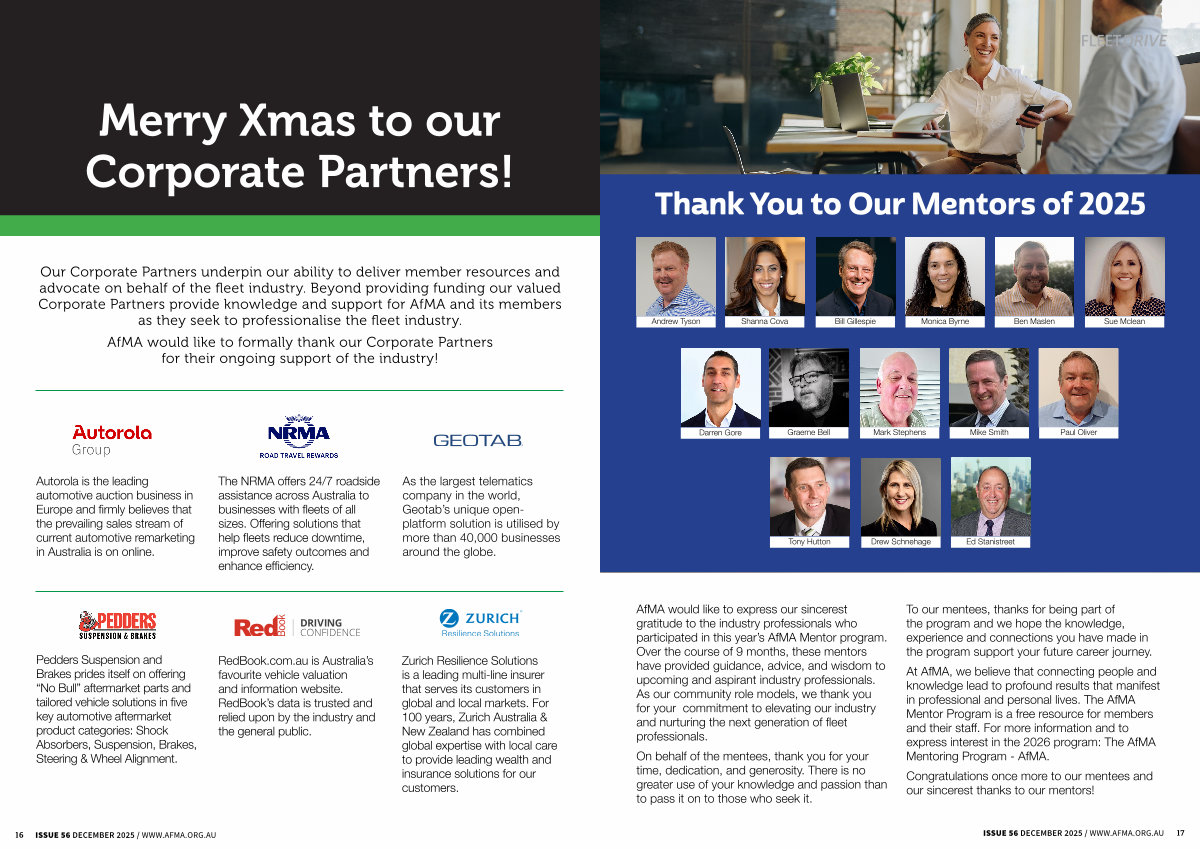 AfMA would like to express our sincerest gratitude to the industry professionals who participated in this year’ s AfMA Mentor program. Over the course of 9 months, these mentors have provided guidance, advice, and wisdom to upcoming and aspirant industry professionals. As our community role models, we thank you for your commitment to elevating our industry and nurturing the next generation of fleet professionals.