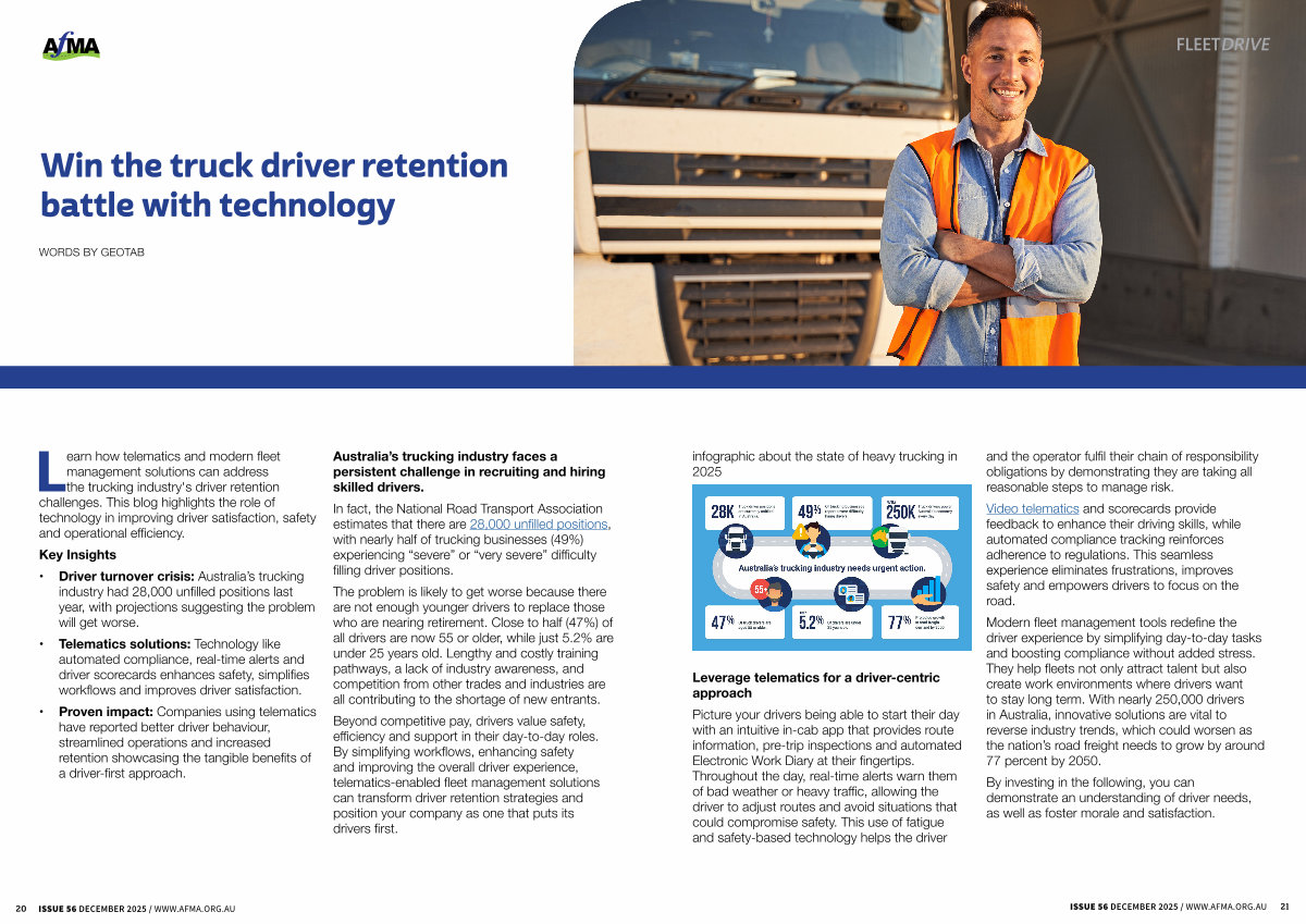 • Driver turnover crisis: Australia’ s trucking industry had 28,000 unfilled positions last year, with projections suggesting the problem will get worse.