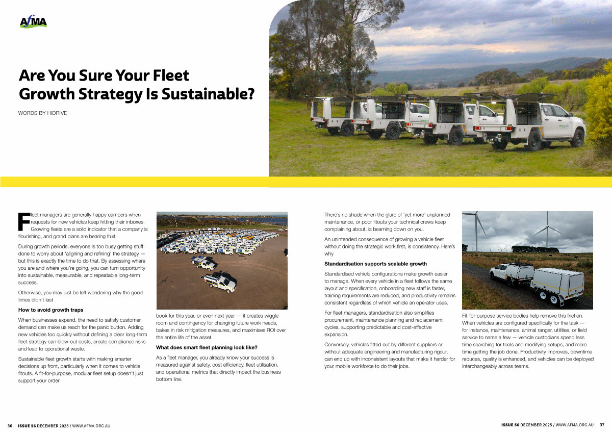 Fit-for-purpose service bodies help remove this friction. When vehicles are configured specifically for the task— for instance, maintenance, animal ranger, utilities, or field service to name a few— vehicle custodians spend less time searching for tools and modifying setups, and more time getting the job done. Productivity improves, downtime reduces, quality is enhanced, and vehicles can be deployed interchangeably across teams.