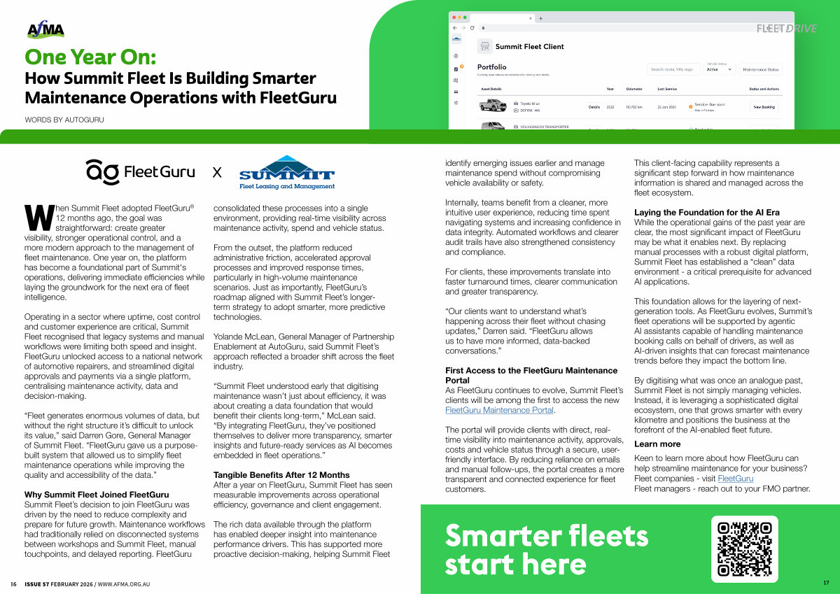 “ Summit Fleet understood early that digitising maintenance wasn’ t just about efficiency, it was about creating a data foundation that would benefit their clients long-term,” McLean said.“ By integrating FleetGuru, they’ ve positioned themselves to deliver more transparency, smarter insights and future-ready services as AI becomes embedded in fleet operations.”