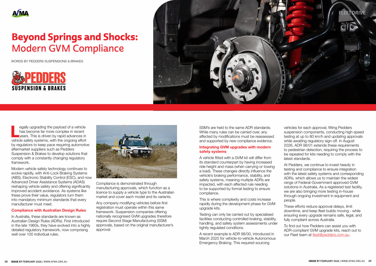 Legally upgrading the payload of a vehicle has become far more complex in recent years. This is driven by rapid advances in vehicle safety systems, with the ongoing effort by regulators to keep pace requiring automotive aftermarket suppliers such as Pedders Suspension & Brakes to develop solutions that comply with a constantly changing regulatory framework.