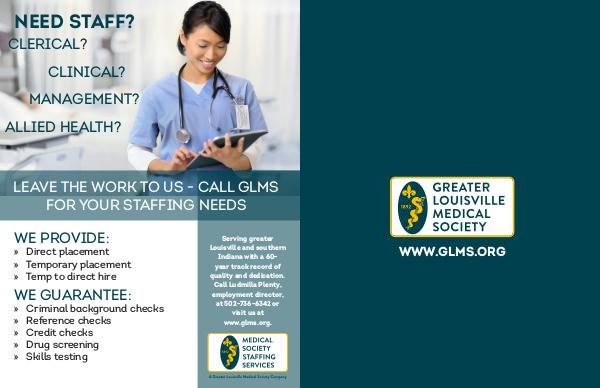 Serving greater Louisville and southern Indiana with a 60- year track record of quality and dedication. Call Ludmilla Plenty, employment director, at 502-736-6342 or visit us at www. glms. org.