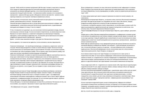 квантовую природу человеческого мозга, в котором сознание и душа – это информация,