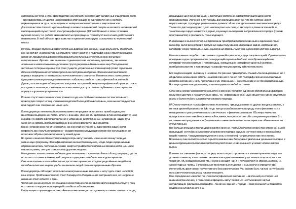 НЛО могут являться голографическими явлениями, пришедшими не из других звездных систем, а из иных уровней реальности. Мы не до конца способны понять природу этого феномена из-за некорректного разграничения психологического и физического миров. Оба мира являются продуктом коллективной человеческой психики, но при этом они оба совершенно реальны. Это состояние неопределенности было названо омниктивным – не являющимся не объективным ни субъективным. Все больше специалистов придерживаются мнения, что НЛО является некоей таинственной силой пришедшей из глубоких слоев импликативного порядка с целью изучения механизмов работы нашей психики. Чем руководствуются эти силы и кем( чем) направляются нам неизвестно. Возможно, они являются частью скрытого механизма сбора самых различных данных о человеке с целью коррекции вселенских констант под постоянно изменяющиеся условия человеческого бытия.