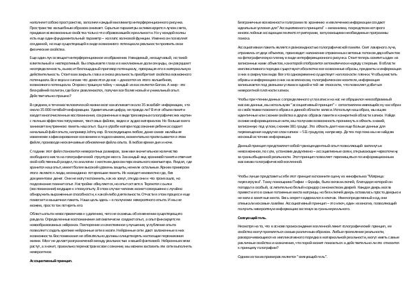 С годами этот файл становится невероятных размеров, занимая значительное количество свободного места на голографической структуре мозга. За каждый вид хранимой памяти отвечает свой собственный раздел, по аналогии с жестким диском персонального компьютера. Раздел, где хранится наш опыт, имеет более высокий уровень защиты, нежели остальные. Ярким примером этого являются люди, неожиданно потерявшие память. Их находят неизвестно где, без документов и денег. Они не могут вспомнить, как их зовут, откуда они и что произошло, но подсознание помнит опыт. Настройки обнуляются, но опыт остается. Теряются ссылки( воспоминания) ведущие к этому опыту. В этом случае человек может совершенно случайно обнаружить выраженные способности, к какой-либо деятельности. Отчасти в этом процессе еще помогает и мышечная память. Наша цель здесь – в получении невероятного опыта. И мы не можем, просто так потерять его.