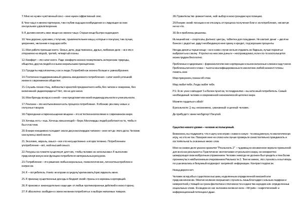 29.Я верен своей позиции и не откажусь от процесса получения благ и их потребления, несмотря