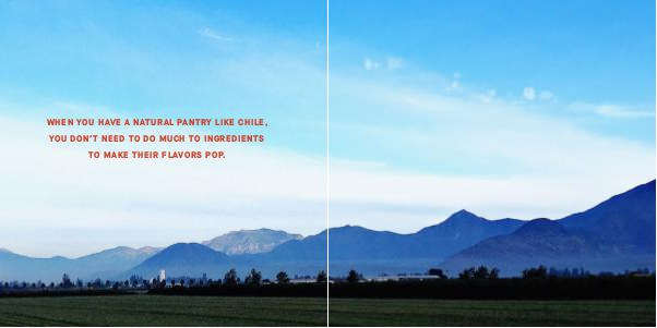 WHEN YOU HAVE A NATURAL PANTRY LIKE CHILE, YOU DON’T NEED TO DO MUCH TO INGREDIENTS TO MAKE THEIR FLAVORS POP. 28 FLOOD
