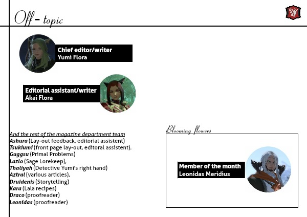 Ashura (Lay-out feedback, editorial assistent) Tsukiumi (front page lay-out, editoral assistent).