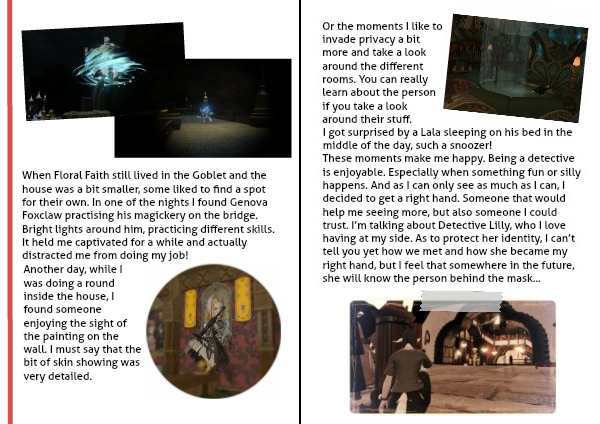 These moments make me happy. Being a detective is enjoyable. Especially when something fun or silly happens. And as I can only see as much as I can, I decided to get a right hand. Someone that would help me seeing more, but also someone I could trust. I’m talking about Detective Lilly, who I love having at my side. As to protect her identity, I can’t tell you yet how we met and how she became my right hand, but I feel that somewhere in the future, she will know the person behind the mask...