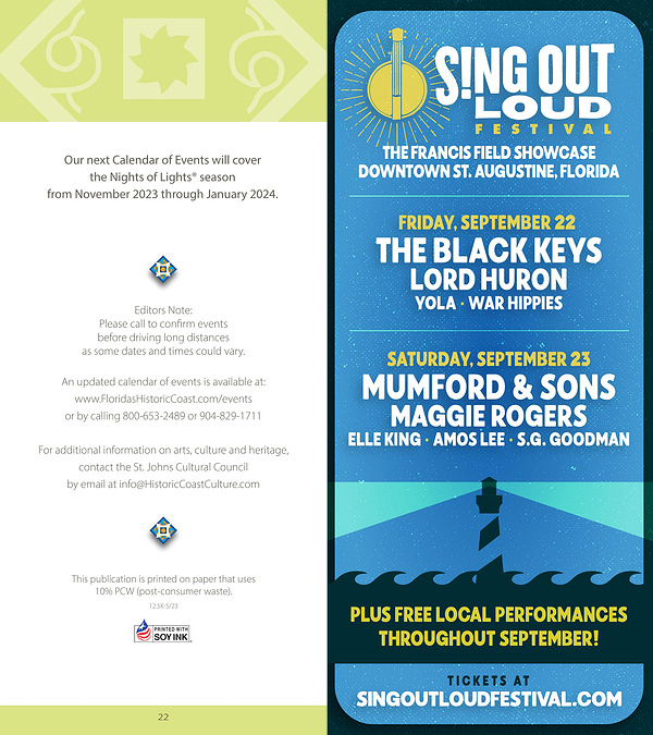 www . FloridasHistoricCoast . com / events or by calling 800-653-2489 or 904-829-1711