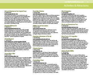 P : 904.827.7728 www . floridawatertour . com Outside venue on the ‘ Osprey ’ - A vessel with spacious , comfortable and covered seating for 37 people . Plenty of room for tables for your catered dinner / lunch or appetizers . They have a bar and restroom on board , as well as plenty of free parking ! With their professional captain and crew , you ’ ll be able to enjoy the sights and sounds of beautiful St . Augustine as you conduct your meeting on the water . visit visit MyFloridaMeetings . com . com 41 27