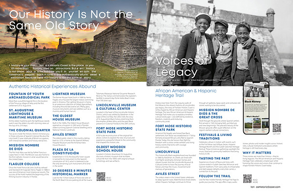 History lives here. From the coquina walls of Fort Mose to the vibrant rhythms of Lincolnville’ s jazz legacy, the story of Florida’ s Historic Coast is richly shaped by African American and Hispanic heritage. The new African American & Hispanic Heritage Trail invites you to explore a timeless cultural landscape— one defined by resilience, freedom, creativity and enduring community pride.