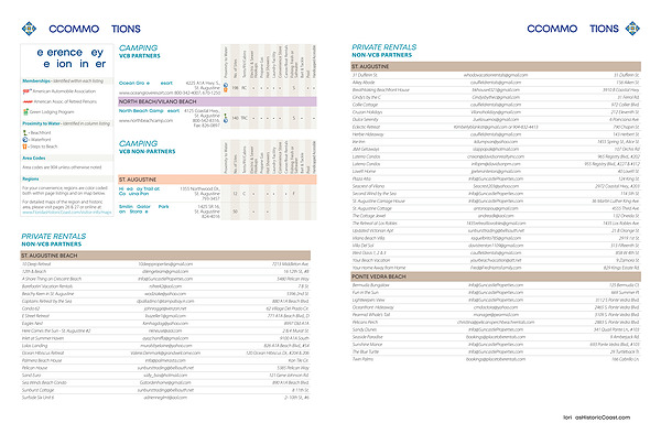 ST. AUGUSTINE 31 Dufferin St. whodovacationrentals @ gmail. com 31 Dufferin St. Aikey Abode caulfieldrentals @ gmail. com 156 Aiken St. Breathtaking Beachfront House bkhouse4321 @ gmail. com 3910 B Coastal Hwy. Cindy ' s by the C Cindysbythec @ gmail. com 31 Ferrol Rd. Collie Cottage caulfieldrentals @ gmail. com 972 Collier Blvd. Cruzan Holidays Vilanoholidays @ gmail. com 212 Eleventh St. Dulce Serenity zuelasuenos @ gmail. com 6 Poinciana Ave. Eclectic Retreat Kimberlyblankstr @ gmail. com or 904-832-4413 790 Chapin St. Herbie Hideaway caulfieldrentals @ gmail. com 143 Herbert St. Irie-Inn kdumpson @ yahoo. com 1455 Spring St., Alice St. J & M Getaways slappopak @ hotmail. com 107 Orchis Rd Laterra Condos cnixon @ davidsonrealtyinc. com 965 Registry Blvd., # 202 Laterra Condos infopm @ davidsonpm. com 955 Registry Blvd., # 227 & # 312 Lovett Home jpetersinteriors @ gmail. com 40 Lovett St. Plaza Alta Info @ SuncastleProperties. com 124 King St. Seacrest of Vilano Seacrest203 @ yahoo. com 2972 Coastal Hwy., # 203 Second Wind by the Sea Info @ SuncastleProperties. com 114 5th St. St. Augustine Carriage House Info @ SuncastleProperties. com 36 Martin Luther King Ave. St. Augustine Cottage antoniopou @ gmail. com 4555 Third Ave. The Cottage Jewel andreadk @ aol. com 132 Oneida St. The Retreat at Los Robles 1435retreatlosrobles @ gmail. com 1435 Los Robles Ave. Updated Victorian Apt sunbursttrading @ bellsouth. net 21 B Orange St. Vilano Beach Villa raquelbrito785 @ gmail. com 2919 1st St. Villa Del Sol davistrenton1109 @ gmail. com 313 Fifteenth St. West Oasis 1, 2 & 3 caulfieldrentals @ gmail. com 858 W 4th St. Your Beach Vacation yourbeachvacation @ att. net 9 Zamora St. Your Home Away from Home Fred @ FredHarrisFamily. com 829 Kings Estate Rd.