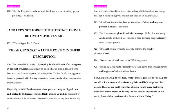 and heated to 98 degrees, wrapped tight around your dick. I remember