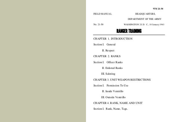 DEPARTMENT OF THE ARMY No. 21-50 WASHINGTON 25, D. C., 18 January 1943 RANGER TRAINING