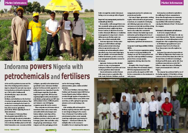 In the area of fertilizers, Indorama Eleme Fertilizer and Chemicals Limited( IEFCL) has become Nigeria ' s prime fertilizer solutions provider through supplies of its granular Urea to over 20 million farmers across all the states and Abuja, as well as giving free agronomy extension services and training to the farmers.