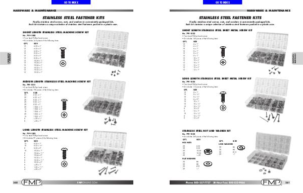 Each kit contains a unique selection of stainless steel fasteners packed in a plastic case.