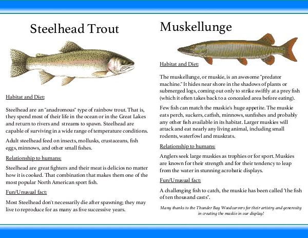 eats perch, suckers, catfish, minnows, sunfishes and probably