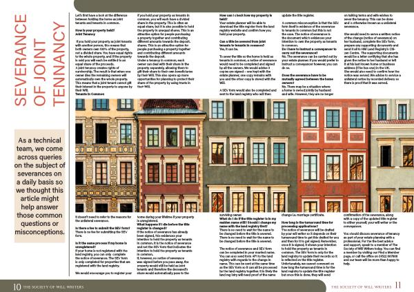 You should discuss severance of tenancy as part of your estate planning with a professional . For the the best advice and support , speak to a member of The Society of Will Writers today . You can find a member by visiting our Find a Member page , or call the office on 01522 687888 and our team will be more than happy to help .