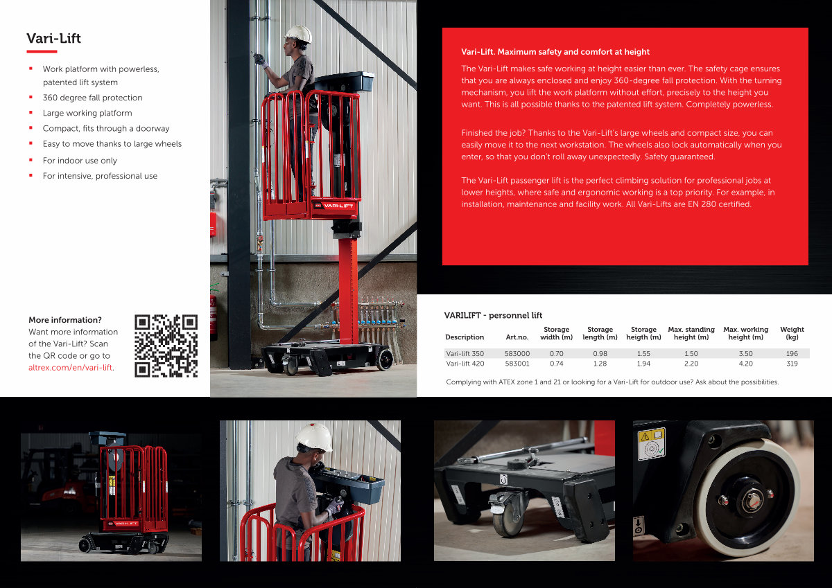 More information? Want more information of the Vari-Lift? Scan the QR code or go to altrex. com / en / vari-lift.