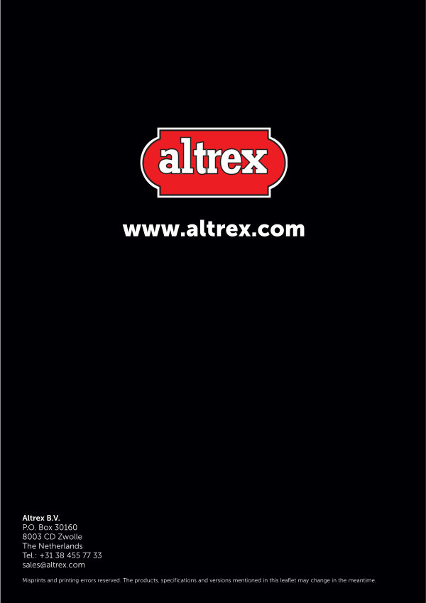 Altrex B. V. P. O. Box 30160 8003 CD Zwolle The Netherlands Tel.: + 31 38 455 77 33 sales @ altrex. com