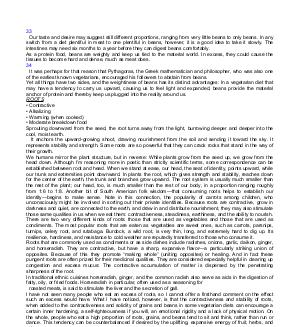 33 Our taste and desire may suggest still different proportions, ranging from very little beans to only beans. In any switch from a diet plentiful in meat to one plentiful in beans, however, it is a good idea to take it slowly. The intestines may need six months to a year before they can digest beans comfortably. As a protein food, beans are weighty and keep us tied to the material world. In excess, they could cause the tissues to become hard and dense, much as meat does. 34 It was perhaps for that reason that Pythagoras, the Greek mathematician and philosopher, who was also one of the earliest known vegetarians, encouraged his followers to abstain from beans. Yet all things have two sides, and the weightiness of beans has its distinct advantages: In a vegetarian diet that may have a tendency to carry us upward, causing us to feel light and expanded, beans provide the material anchor of protein and thereby keep us plugged into the reality around us. ROOTS