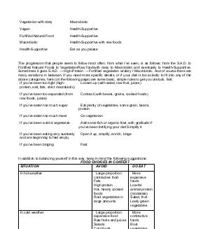 The progression that people seem to follow most often, from what I’ ve seen, is as follows: from the S. A. D. to Fortified Natural Foods to Vegetarian / Raw food / with dairy to Macrobiotic and eventually to Health-Supportive. Sometimes it goes S. A. D. → High-Protein → Fortified vegetarian w / dairy ŕ Macrobiotic. And of course there are many variations in between. If you need more specific details, or if your diet is too eclectic to fit into any of the above categories, here( on the following page) are some basic, simple rules to get you unstuck, fast. If you’ ve been too tight( highprotein, salt, fats, strict macrobiotic