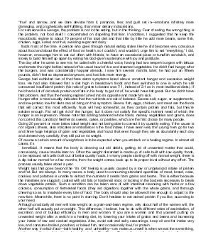 “ true” and narrow, and we dare deviate from it, paranoia, fear, and guilt set in— emotions infinitely more damaging, and prophetically self-fulfilling, than minor dietary indiscretions. For someone like George, the problem is not in the eating, but in the thinking. Fear of eating the wrong thing is the problem, not food itself. I concentrated on dispelling that fear. In addition, I suggested that he keep the macrobiotic regime to about 70 percent of his total diet and that little by little he add more beans, some fish, chicken, eggs, salad, and fruit, avoiding sugar and dairy foods most of the time. A person who goes through natural eating styles like he did becomes very conscious about food and about the effect of food on health, so I couldn’ t, and wouldn’ t, urge him to eat“ everything.” I did, however, encourage him to eat out often with friends, to have an occasional pizza or tunafish sandwich, and slowly to build himself up again by eating his God-given sustenance with joy and gratitude. The day after he came to see me, he called with a cheerful voice, having had two tempeh burgers with lettuce and tomato the night before instead of his usual bowl of rice and steamed vegetables. He didn’ t feel hungry after the burgers, and was considerably happier already. I saw him several months later; he had put on fifteen pounds, didn’ t feel so depressed anymore, and had lots more energy. George had exhibited two of the three alarm symptoms listed above: constant hunger and excessive weight loss. He had also followed first a diet high in breakdown foods and then switched to one in which he still consumed insufficient protein( his ratio of grains to beans was 7:1, instead of 2:1 as in most traditional diets). If he’ d had a lot of old stuck protein and fats in his body to get rid of, he would have felt great. But he didn’ t have that problem, and thus the healing regime turned into its opposite and made him sick. Hunger after a meal usually indicates that the nutrients are out of balance. Excess salt, sugar, or supplements, and low-protein, low-fat diets can all bring on this symptom. Beans, fish, eggs, chicken, and meat are the foods that will correct this most efficiently. Nuts will help somewhat, as they contain protein and fats, but they’ re seldom enough. Fat will get rid of the hunger, but it does not satisfy the specific nutrient need of which the hunger is an expression. Please note that adding balanced whole foods, namely vegetables and grains, does not correct this condition! Neither do sweets, cakes, or pastries, which are the first choice for many people. Going 20 percent or more below ideal weight and not being able to correct it by quantity eating, if the cause is not organic illness, also indicates an imbalance in the food intake. I have seen very thin young men go for two and three huge helpings of grain and vegetables and found that even though they ate as abundantly each day and chewed very carefully, they still put on no weight. Of course a certain amount of weight loss is to be expected when you embark on a healing regime. In almost all cases, it’ s beneficial. It means that the body is cleaning out old debris, getting rid of unwanted matter that could, conceivably, cause trouble later on. Often the weight discarded is made up of cells built with low-quality foods, to be replaced with cells built out of better quality foods. In many people starting off with normal weight, there is a dip below normal for a few months, then the weight comes back up to its proper level without any effort. The process usually takes about a year. Weight loss that goes beyond the“ it’ s OK” feeling is usually caused by a low or unbalanced intake of protein and fat. But not always. In many cases, a body used to consuming standard quantities of meat, bread, cake, cookies, and potatoes is unable to extract the nutrients it needs from grains and beans. This is either because the intestines are sluggish, coated with old fats or hardened stool, or lacking in the bacteria necessary to break down vegetable protein. Such a condition can be taken care of with intestinal cleansing with herbs or a few colonics, consumption of fermented foods( they aid digestion) together with the whole grains, and thorough chewing so as to insalivate every bite of food. The body should also be allowed time enough to adjust to the new fare. Meanwhile, there is no point in starving: Don’ t hesitate to eat animal protein if you like, according to your need. Although practically all men will lose weight on a grain-and-bean regime, only about half of the women will; the other half will actually put on weight. This difference, I believe, has to do with different rates of assimilation, of excretion, and of buildup efficiency in men and women. If you are a woman and find yourself putting on unwanted weight after a switch to a healing diet, try lowering your intake of grains and beans and increasing your intake of raw and cooked vegetables. Also, avoid salt and salty seasonings, keep oil and fat intake very low, and consume broiled, poached, or baked fish, and occasionally fowl, for protein. Another way in which food— both healthy and unhealthy— can make us unwell is when we eat the same thing, or the same flavor, all the time. According to the Five-Phase Theory, if we don’ t vary our foods or flavors, we overstimulate one energy phase while depleting another. For example, salty foods( Water Phase) will stimulate the kidneys when used sparingly; in excess, they will slow them down and cause water retention, while at the same time weaken the heart( Fire Phase). This happens to agree with modern nutritional knowledge: Salt is customarily restricted for people with heart trouble and / or high blood pressure( which involves the kidneys). A similar situation occurs when we eat fats or oils( Wood Phase): A small amount will nourish the liver and gall bladder; too much, and those organs will be overb