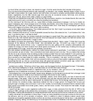 our food: When one eats no meat, one needs no sugar— if at the same time the diet includes whole grains. Thus my friend found herself plunked, with practically no transition, into a totally different dietary mode. From a diet high in meat protein, fat, sugar, alcohol, and soft drinks, she went to complex carbohydrates( whole grains, beans, vegetables), low fat, little natural sugar( fruit was only an occasional snack), herb teas, and, at times, apple juice. Ah yes, and no milk, butter, cheese, or yogurt either. I must say she handled the shock well. Only the first day was there a reaction— her bloated hands. But soon the aduki beans went to work, and within two days the bloating had vanished. On the morning of her third day with us, I gave Elida a shiatsu acupressure massage. I am by no means an expert masseuse, but I know enough to do it for family and friends. One of the things I know is that if I find a pressure point that hurts, it means that energy is blocked there and I must keep on massaging it gently but firmly until it begins to hurt less. Well, when I got to working on her feet, Elida started gasping. The mildest pressure hurt her. But I kept it up anyway as we joked about how much suffering it takes to get better. After I finished, Elida stood up. A look of disbelief crossed her face. She stared at me.“ I can’ t believe this,” she said.“ I can feel my feet. I can feel my feet!” By the fifth day of her stay, her strong constitution had begun to assert itself. She was walking from thirty to fifty blocks at a clip. She had lost about six pounds. She had reduced her insulin intake. Her feet felt normal. And she looked radiant and felt terrific. I began to relax. We talked a lot about the experience. Elida was amazed that she didn’ t desire sugar.“ I think that it must be because of the balance of the other foods,” she commented one day.“ At home I go crazy if I don’ t eat something sweet several times a day.” I explained that she was getting all the complex carbohydrates she needed for energy and brain function from whole grains and beans; in her normal way of eating she only got carbohydrates from sugar, some fruit and potatoes, and alcohol. She also realized something else, without my really having mentioned it specifically.“ I can’ t believe how much fat and protein we eat at home,” she commented over bean salad at lunch one day.“ Do you realize that among the five of us we consume close to twenty pounds of meat a week? And so much cheese! If I can convince my cook to change her cooking, not only would we all get healthier, but we’ d save a lot of money as well.” I nodded. She munched on her bean salad for a while, pensively.“ This is a revelation,” she said,“ and it’ s so simple.” Perhaps you think, dear reader, that I will now proceed to tell you why and how spartan vegetarian food will cure everything that ails us. And so I would have done with great and earnest conviction years ago, certain of the truth and goodness of my path. But as the food philosopher George Ohsawa † pointed out so pithily,“ What has a front has a back, and the bigger the front, the bigger the back.” Fortunately, time, rather than intelligence or study, eventually helps us see the other side of things. As my friend Elida healed herself on vegetarian food, so my husband, John, got sick on it. He had become vegetarian out of intellectual conviction a year and a half before we met; not much had bothered him in his general health, except some allergies, but he became convinced that a change in diet was in order because it made so much sense according to the books he was reading. He made the transition to a diet of raw fruit, vegetables, salads, some whole grains, and lots of almonds and sesame seeds. That winter, 1978 – 79, he felt extremely cold and also became quite thin; although friends and relatives pointed out that he wasn’ t looking well, he insisted that he was. Yet his energy was low, his interest in work minimal, his emotions shaky; depression stalked him like a hungry ghost. He thought that he was just going through a healing crisis and stuck it out for ten months; but eventually he decided that he needed some extra protein and added more whole grains, beans, and fish twice a week. That made him feel better, though still far from great. I myself had also been a pure vegetarian( without fish, eggs, or dairy products) from the fall of 1979 to the spring of 1980; perhaps as like attracts like, we became a couple and eventually married. At the time, John was doing daily cooking demonstrations at a large department store and soon joined me as a teacher at my school. I clearly remember his breakfasts in those days. I’ d get up, make breakfast and school lunches for the kids, eat the leftovers, and run off on errands or business. John, in addition to what I’ d already cooked, would make elaborate and beautiful vegetable dishes and then sit and chew conscientiously for half an hour. I calculated that between chopping, eating, and cleaning up, he would spend two hours on breakfast. And then came lunch. And then dinner. I loved his food. It was beautiful and delicious, for his Middle Eastern background and his training as a chef had given him a fine touch with seasonings. The kids were especially fond of his vegetable stir-fry and his bulgur ‡ with fine noodles. We shared the family cooking, which was a blessing for me. Yet although the girls and I did quite well on our simple fare, I could see that John did not. His energy level and his moods were always low, and he constantly felt somewhat unwell. Disconcerting as it was for me that my husband was not thriving on our wonderful, healthy food, I began to encourage him to eat animal protein more often.