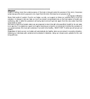 Afterword Health is nothing more than united purpose— if the body is brought under the purpose of the mind, it becomes whole because the mind’ s purpose is one. Apart from the mind, the body has no purpose at all.