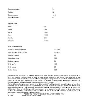 Let us now look at the calcium question from another angle. Instead of seeing osteoporosis as a condition of lack, let’ s consider it as a condition of drain. In other words, the question will be not“ What is the way to add more calcium to the system?” but rather,“ What is draining or keeping calcium away?” If we can find an answer to this, we can also find a different solution to the calcium shortage. That is, instead of increasing input, we can simply change conditions so that there is no unwanted output, no drain. The list of foodstuffs that in one way or another affect our body’ s calcium balance is surprisingly long, even if we ignore the simple, nourishing foods of the foregoing list. Some will add calcium in an unbalanced context; some are counterbalancers to these; some will drain calcium from the system, which is fine if there is an excess, but detrimental if there isn’ t. Still others will cause calcium to be deposited in soft tissues or other inappropriate locations. It is important to understand that it is not enough that a food be high in calcium. The body has to be able to assimilate and utilize the calcium properly.
