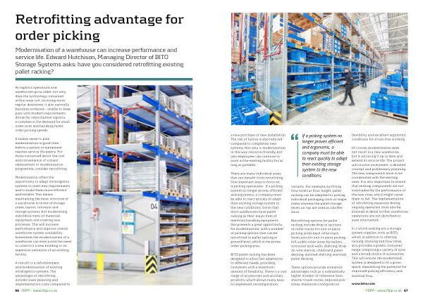 There are many individual areas that can benefit from retrofitting . One important area to focus on is picking operations . If a picking system no longer proves efficient and ergonomic , a company must be able to react quickly to adapt their existing storage system to the new conditions . Given that most warehouses have pallet racking as their major item of materials handling equipment , this presents a great opportunity for modernisation , with a number of picking options that can be retrofitted in pallet racking at ground level , which is the prime order picking area .