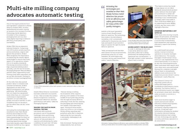 One of the largest premium flour and ingredient companies in North America , Ardent Mills , recently implemented automatic testing on several of its conveyor Fortress Technology metal detectors . A number of the company ’ s packaging lines are now also using digital reporting to enhance efficiency , food safety and traceability .