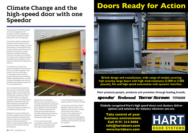 In conclusion Hart Door Systems’ Speedor range can make a very significant contribution to energy conservation and a carbon footprint. The combination of automation and high speed operation prevents the passage of heated or cooled air escaping from a building only to heat the car park for instance.