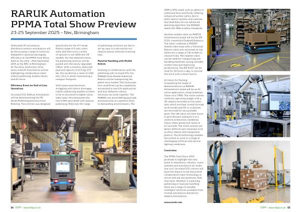 Dedicated UK automation distributor RARUK Automation will be showcasing a range of solutions designed to optimise packaging efficiency at the PPMA Total Show, held on the 23rd – 25th September 2025 at the NEC in Birmingham. At the show, held every three years, RARUK Automation will be highlighting collaborative robot( cobot) palletising, mobile robots and AI vision.
