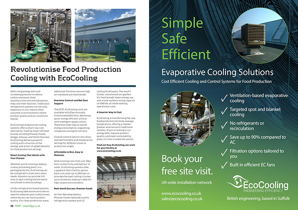 EcoCooling’ s evaporative cooling systems offer a smart, low-cost alternative. Used by major UK food brands including Premier Foods, Greggs, Subway, and Hotel Chocolat, EcoCooling delivers powerful cooling with a fraction of the energy, and a host of added benefits for food production settings.