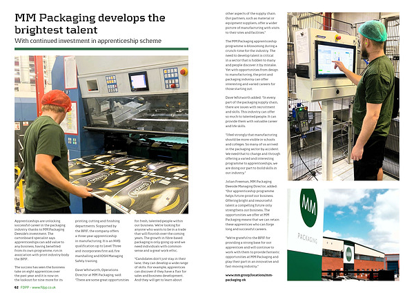 Apprenticeships are unlocking successful career in the packaging industry thanks to MM Packaging Deeside’ s investment. The cartonboard specialist says apprenticeships can add value to any business, having benefited from its own programme, run in association with print industry body the BPIF.