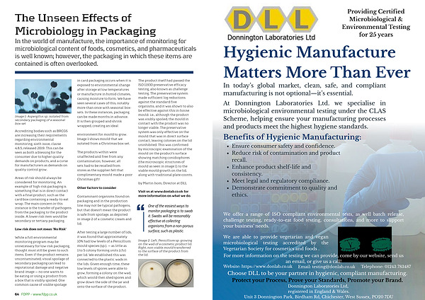At Donnington Laboratories Ltd. we specialise in microbiological environmental testing under the CLAS Scheme, helping ensure your manufacturing processes and products meet the highest hygiene standards.