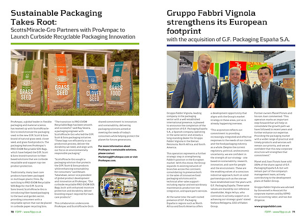 Manel and Joan Flotats have sold 100 % of the share capital of G. F. Packaging España S. A. but will remain part of the company’ s management team, actively contributing to the development plans of Fabbri Group.