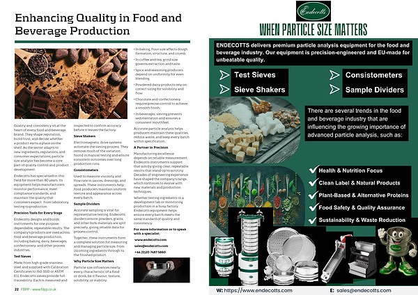 Whether testing ingredients in a development lab or monitoring production in a busy factory, Endecotts equipment helps ensure every batch meets the same standard of quality and consistency.