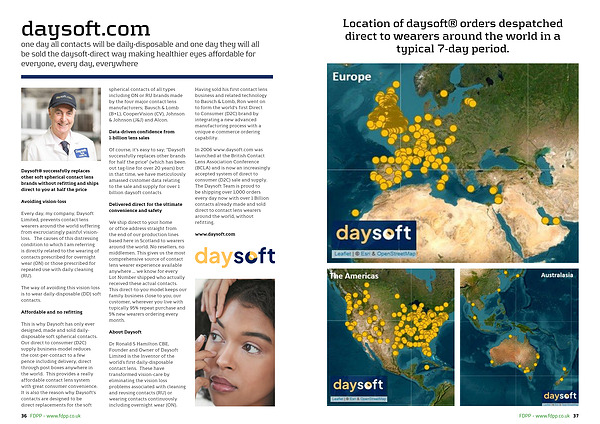 In 2006 www. daysoft. com was launched at the British Contact Lens Association Conference( BCLA) and is now an increasingly accepted system of direct to consumer( D2C) sale and supply. The Daysoft Team is proud to be shipping over 1,000 orders every day now with over 1 Billion contacts already made and sold direct to contact lens wearers around the world, without refitting.