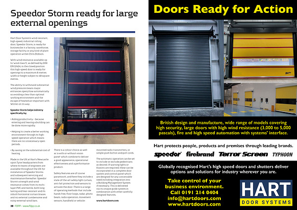 Hart Door System’ s wind-resistant, high-speed, industrial rolling door, Speedor Storm, is ready for business be it a factory, warehouse, storage facility or any kind of plant operation writes Chris Dobson.
