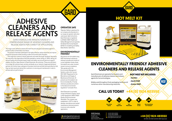 Gard Chemicals are specialist formulators and manufacturers of adhesive cleaners and release agents for hot and cold glue.