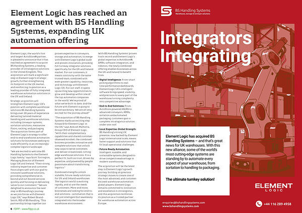 Element Logic has acquired BS Handling Systems – and that’ s great news for UK warehouses. With this new alliance, some of the world’ s most cutting-edge systems are standing by to automate every aspect of your warehouse, from sortation to handling to packaging.