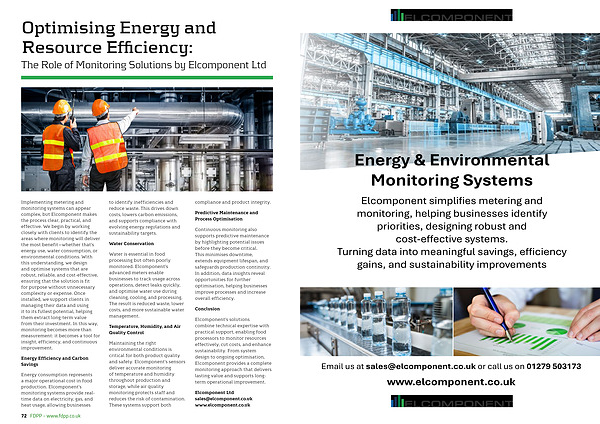 Elcomponent’ s solutions combine technical expertise with practical support, enabling food processors to monitor resources effectively, cut costs, and enhance sustainability. From system design to ongoing optimisation, Elcomponent provides a complete monitoring approach that delivers lasting value and supports longterm operational improvement.