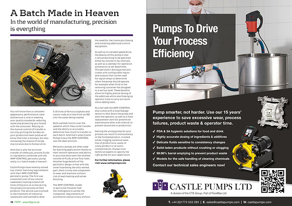 Castle Pumps have recently solved two clients’ batching requirements with their AMP-CONTROL peristaltic pump. The first was a manufacturer of low calorie sweeteners looking to batch 10 litres of Glycerin at a time during the production process of their products. The second was involved in the treatment of industrial wastewater and wanted to dose