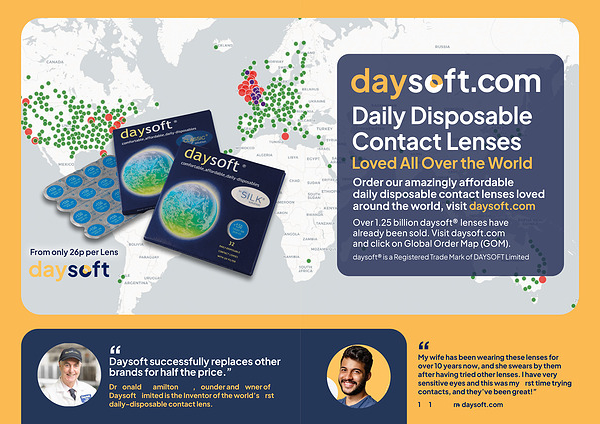 Over 1.25 billion daysoft ® lenses have already been sold. Visit daysoft. com and click on Global Order Map( GOM).