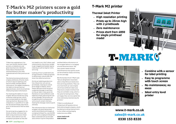 T-Mark’ s M2 printers score a gold for butter maker’ s productivity