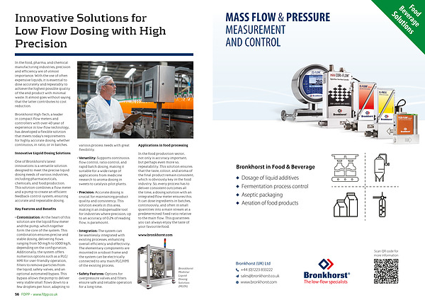 One of Bronkhorst’ s latest innovations is a versatile solution designed to meet the precise liquid dosing needs of various industries, including pharmaceuticals, chemicals, and food production. This solution combines a flow meter and a pump to create an efficient feedback control system, ensuring accurate and repeatable dosing.