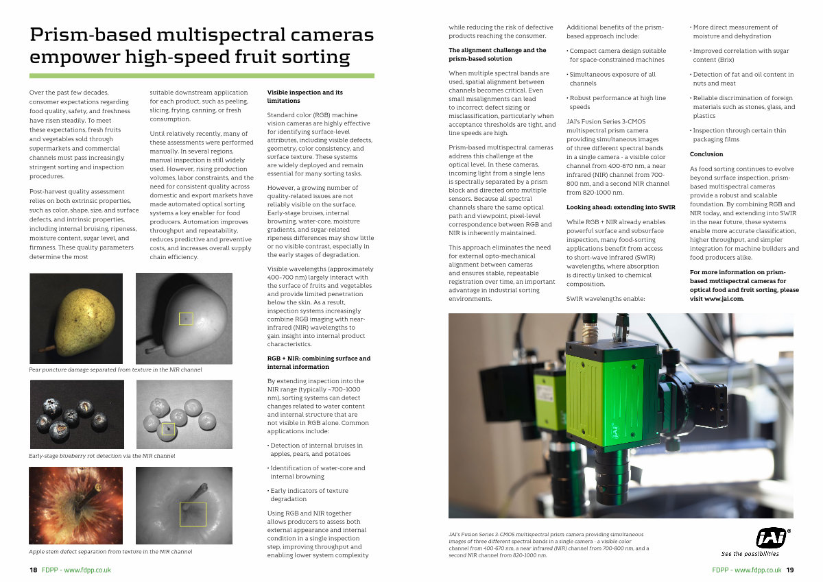 For more information on prismbased multispectral cameras for optical food and fruit sorting, please visit www. jai. com.